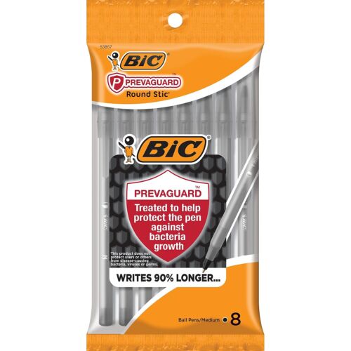 Bic Prevaguard Round Stic Black Ball Pen – 8 Count