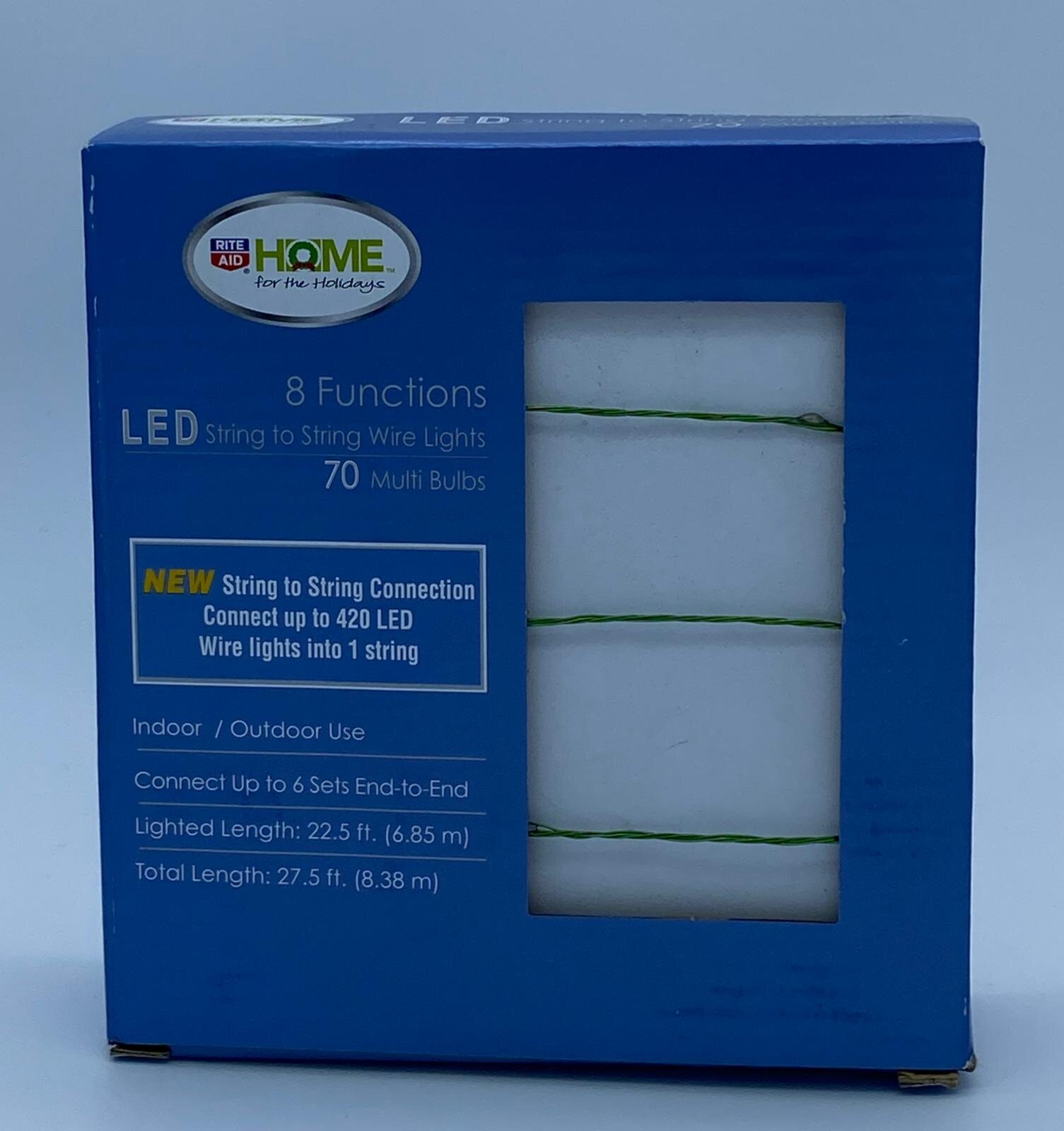 Rite Aid Home for The Holiday 8 Functions LED String to string wire 70 Warm White Blulbs, Use Indoor Outdoor