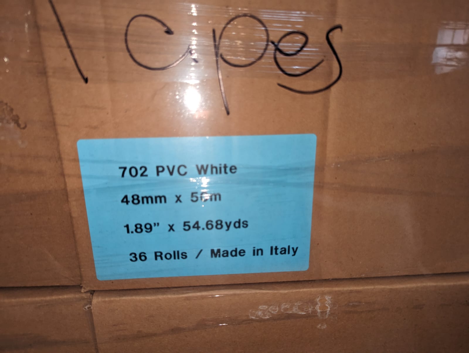 PVC 55 yards bigger than Uline size of 36 yards plus mfg Italy